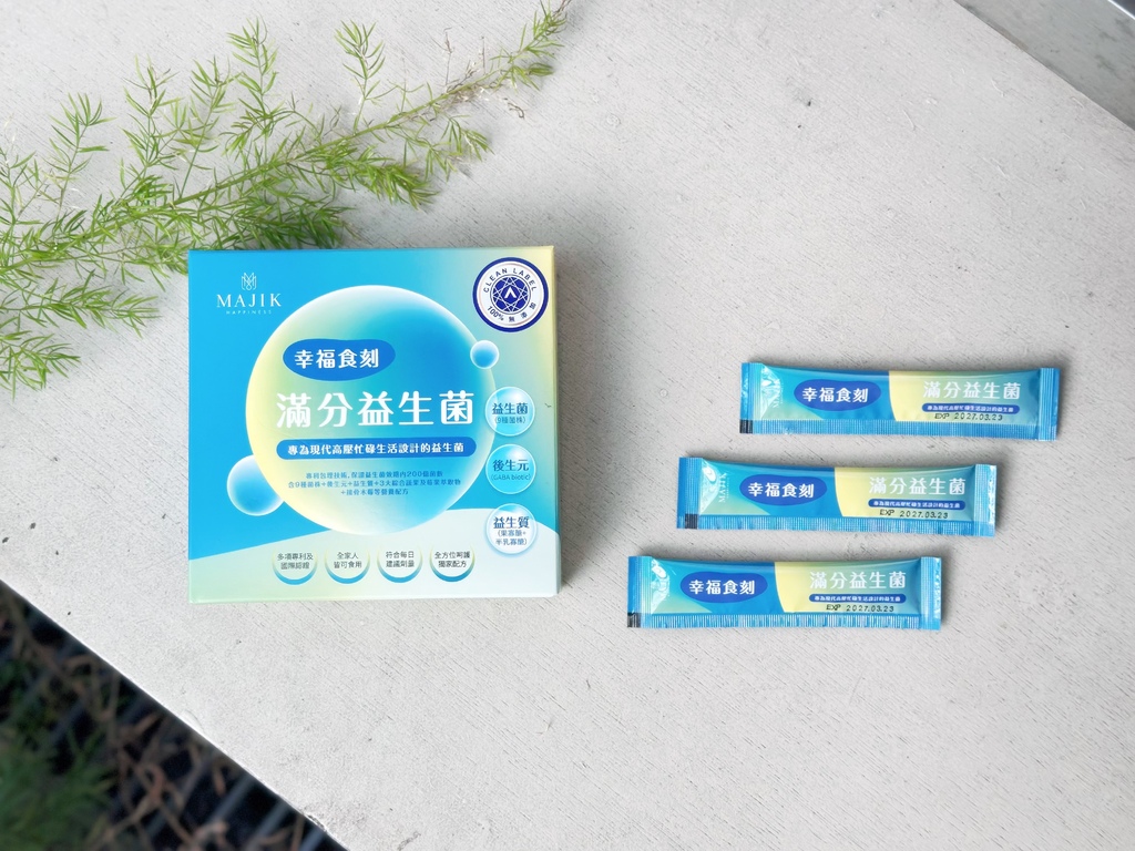 再加上育兒與工作壓力交錯,晚上常常睡不好,白天精神自然大打折扣。就在我努力尋找一款「全家都能安心食用的益生菌」時,注意到了Majik美吉克的「幸福食刻滿分益生菌」。